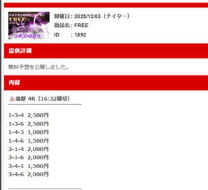 無料予想の実績(11月29日~12月3日)