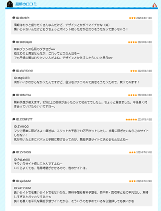 今後は、より実力を高め、ユーザーにとって有益な情報を安定的に提供できるシステム構築を目指していくべきです。現状では、特別おすすめできるサイトとは言いがたい評価にとどまります。