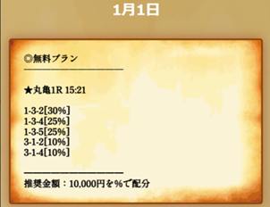 | 01/01 丸亀1R | 1-3-2(¥490) |