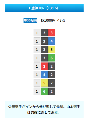 | 6月9日 | 唐津3R | 1-4-5 | 的中 |