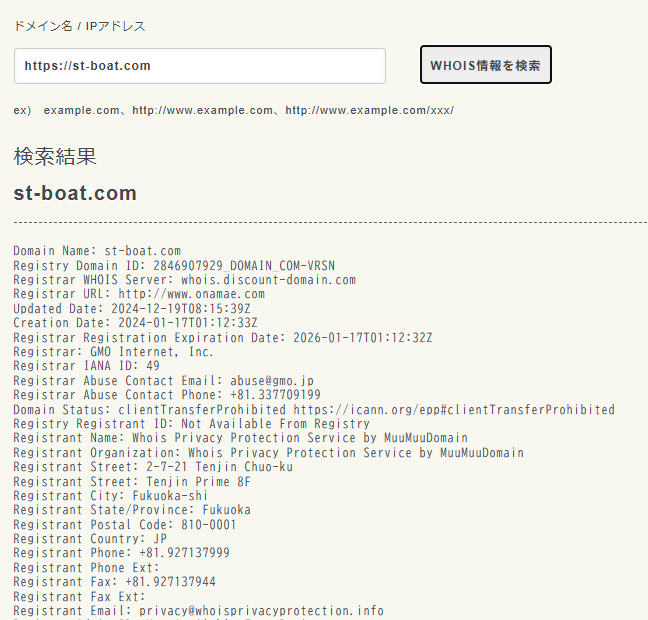 ストームボートの公式サイト「ST-BOAT.COM」のドメイン情報は、国際的に信頼されているドメイン管理機関によって登録・管理されており、第三者による改ざんは不可能な客観的情報です。